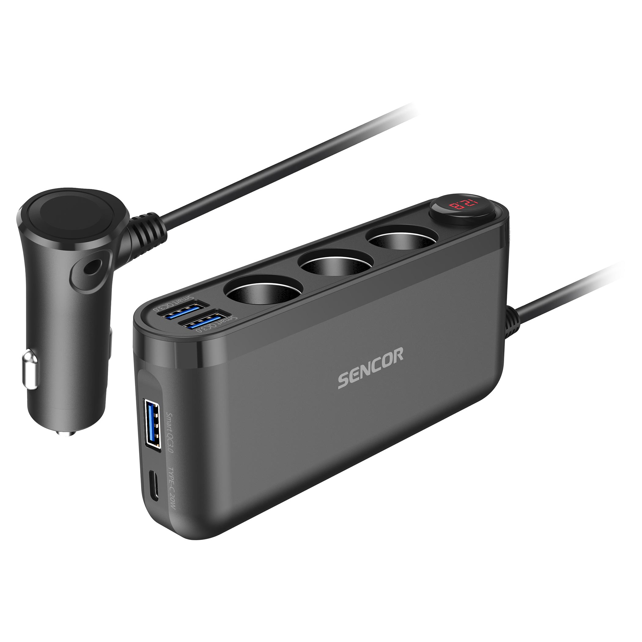SCH 470 Automibilinis usb įkroviklis su trigubu lizdu
